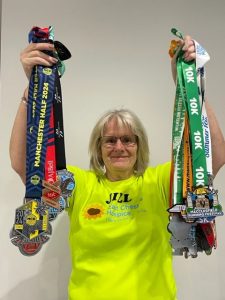 Jill has run 28 races for the Hospice in four years, plus the Great North Run, Manchester half marathon, walls of Dubrovnik and a 5k in the Croatian city.