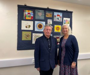 Art work by the Silktown Stitchers has pride of place at East Cheshire Hospice. The group dedicated the colourful hanging to the memory of Jill Rowbotham, a much-loved member who died of cancer in March 2020. David Rowbotham and Alison Bettles with the art work by the Silktown Stitchers. Her husband David was present at … Continue reading Silktown Stitchers